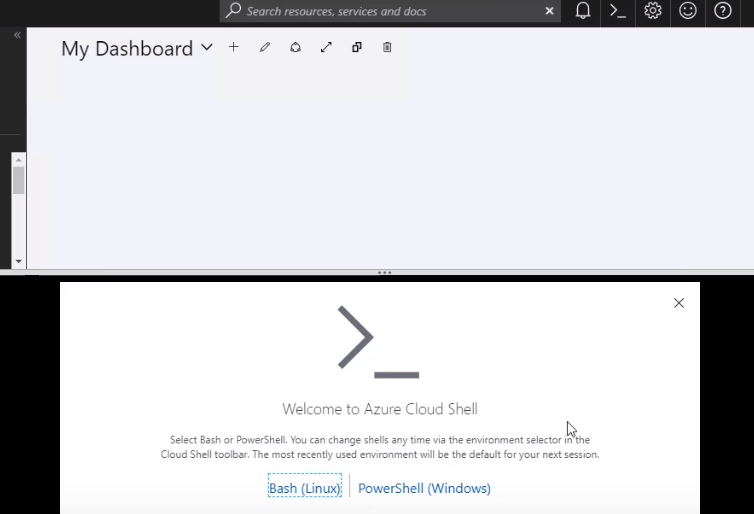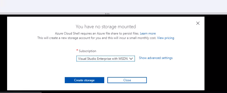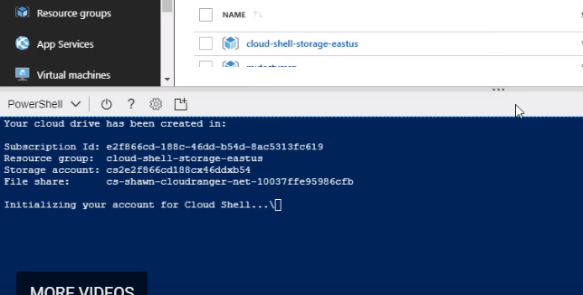 - Click on PowerShell (WINDOWS) button to create teh storage.