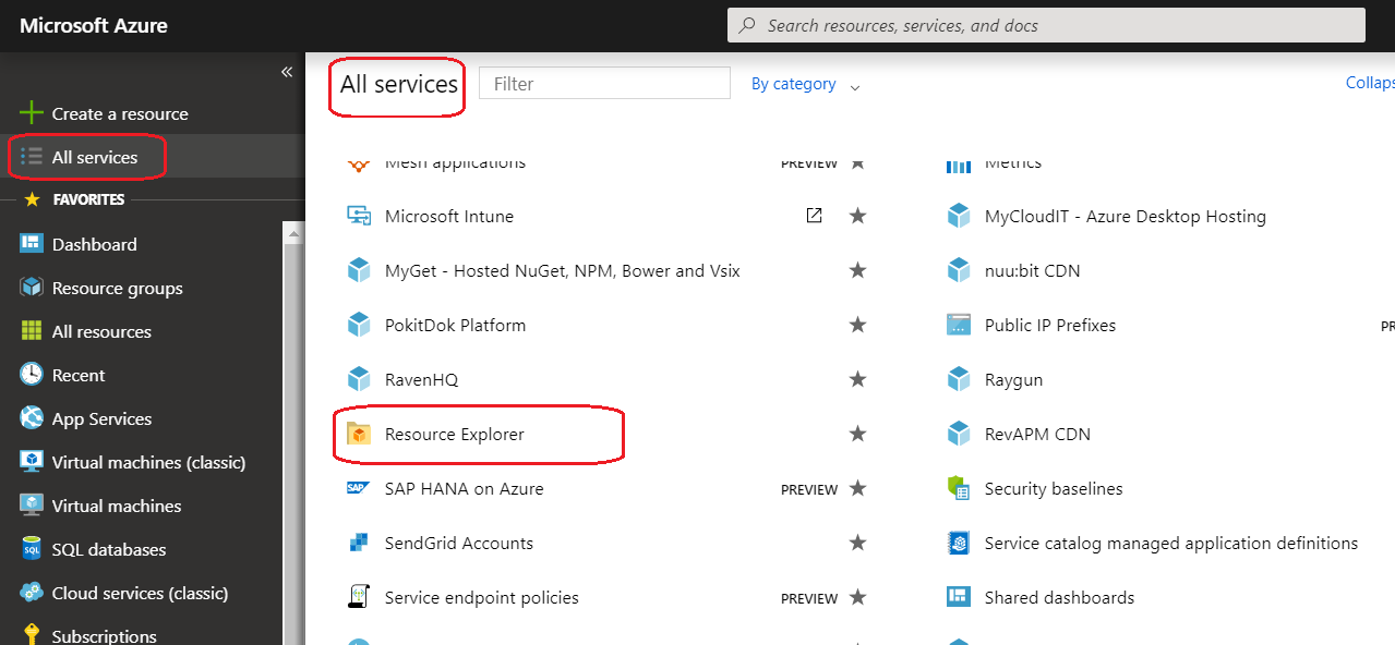 Figure 2: Azure – Resistered Resource Provider fo our subscription - Now we would like to see the details of a registered Resource Provider. To see that, go to All Services and try to find Resource Explore, as shown in following figure.