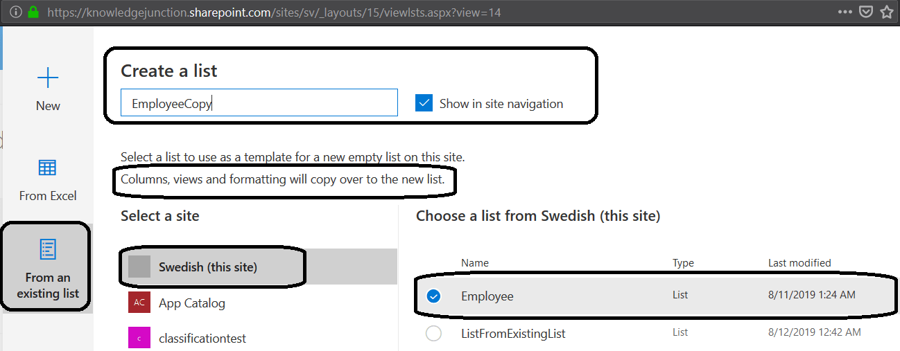 - So basically we are creating copy of “Employee” list from “Swedish” site