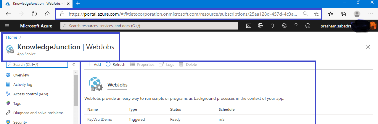 - We have scheduled the Webjob every minute as per the setting in “Settings.job” file