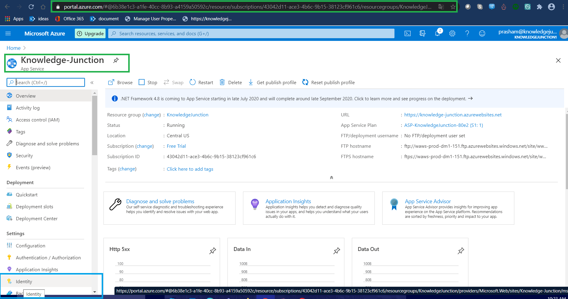 • Once we click on “Identity” option from left side, we will be redirected to “Identity” blade as