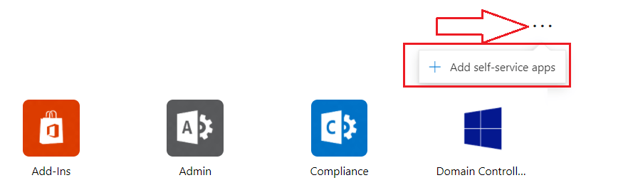 Even when try to add new self-service app by clicking +Add Self-service apps link as showing in the following .