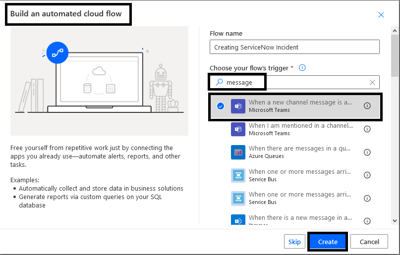 In this article we will discuss Power Automate action to create incident in ServiceNow. In this article we will simple discuss how the very basic incident is created when any message is posted in Teams channel and in next upcoming articles we will go in depth.