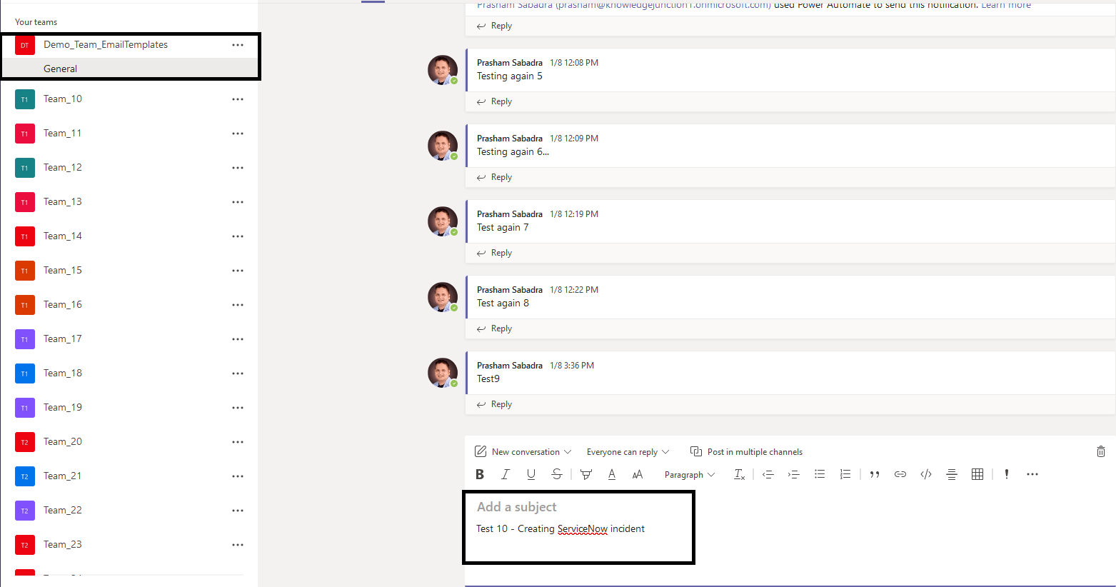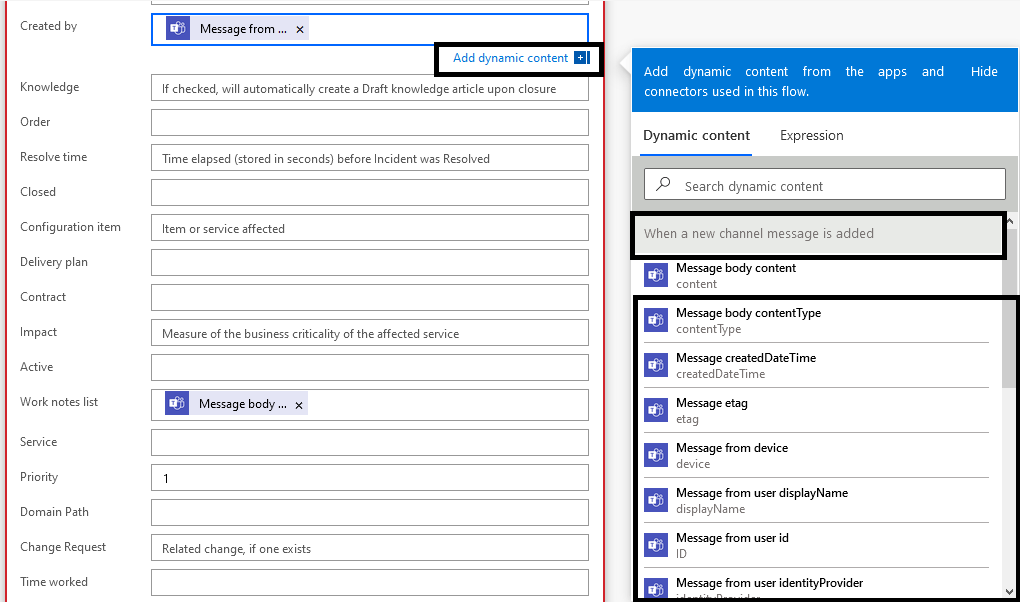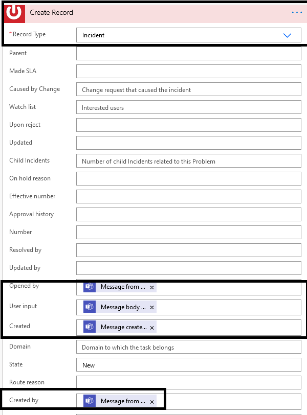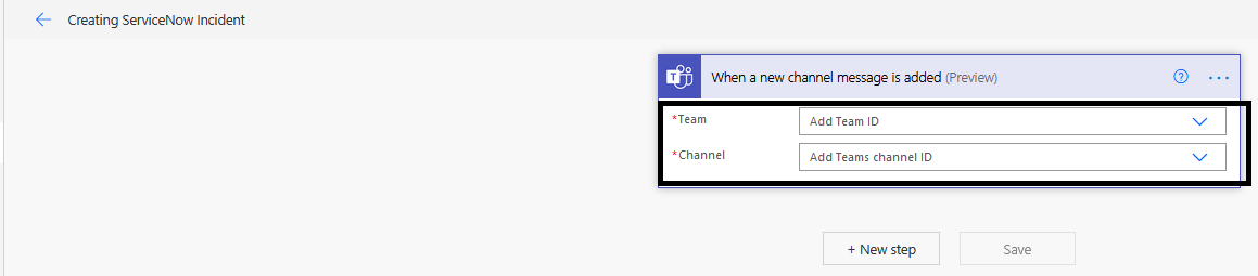 Use Case / Background: We are automating the process of creation of ServiceNow incident from Teams channel.