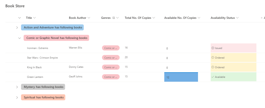 Today, we will see SharePoint list view formatting. In my last blog I have created a list to store book information, we are going to use the same list. We are going to customize SharePoint list view grouped by Genre column. Without going into deep, let’s see how to do it!