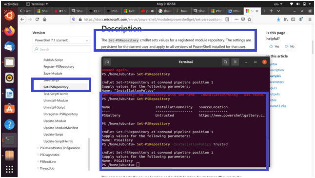 - But still we need to use “Set-PSPRepository” cmdlet to set the “InstallationPolicy” for PowerShell repository for current user