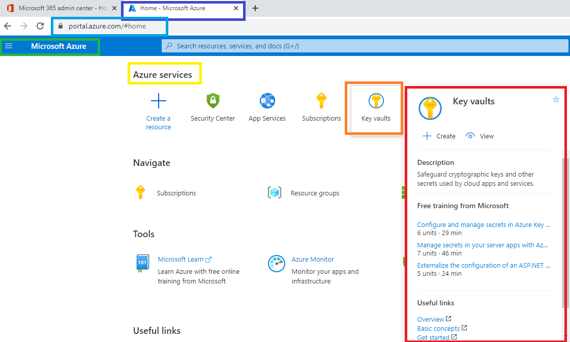 - Key Vault securely store and tightly control access to tokens, passwords, certificates, API keys, and other secrets