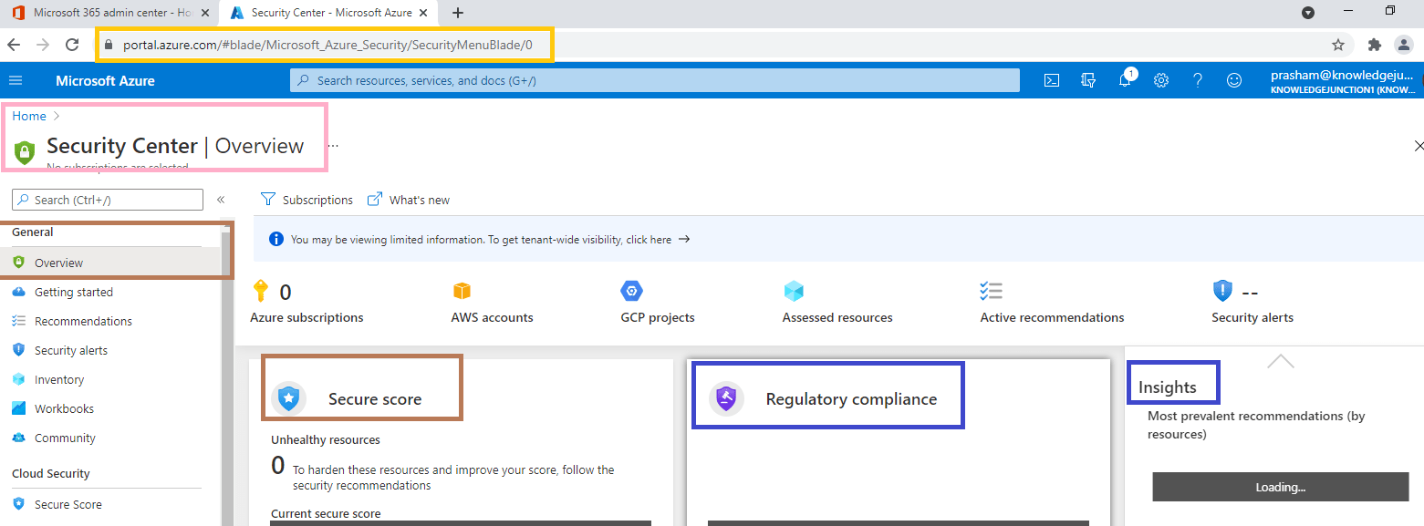 - We could navigate to Azure Security Center from Azure portal as shown in above Fig or by directly navigating to – https://azure.microsoft.com/services/security-center