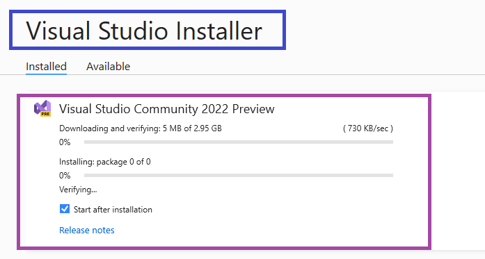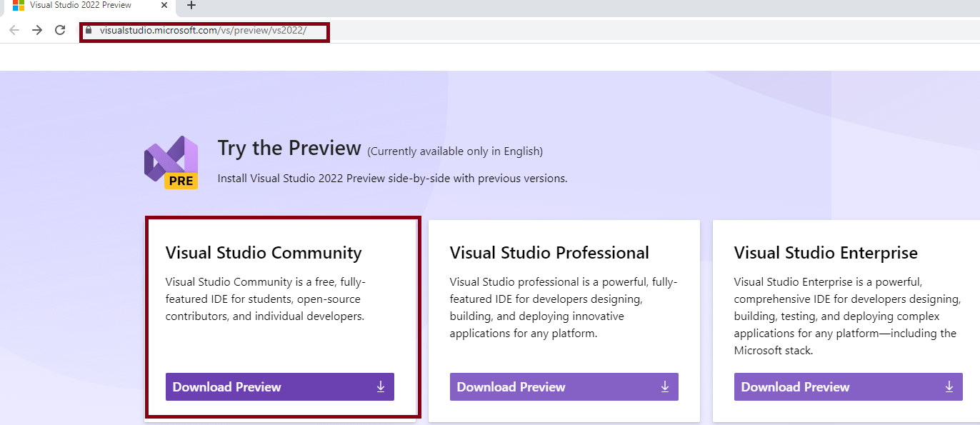 - We will install Visual Studio 2022 preview community edition, please download from the above download link