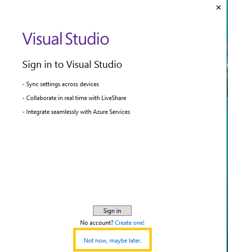 - Once we clicked on “Start Visual Studio“, it will show following dialog as