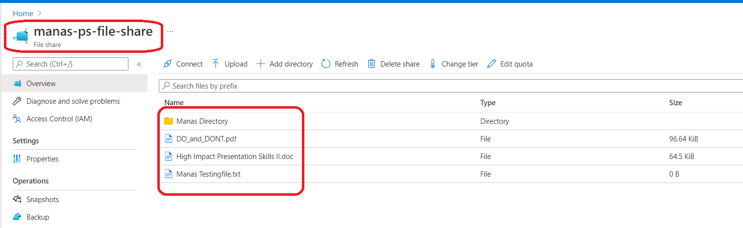 In this section we will see how to restore our files from a snapshot using powershell. Suppose by mistake we have deleted files from our share file and we want them back, in that case we can restore them from latest snapshot. In our case I have deleted all files from our selected File Share except one. In this demo we will restore them from snapshot.