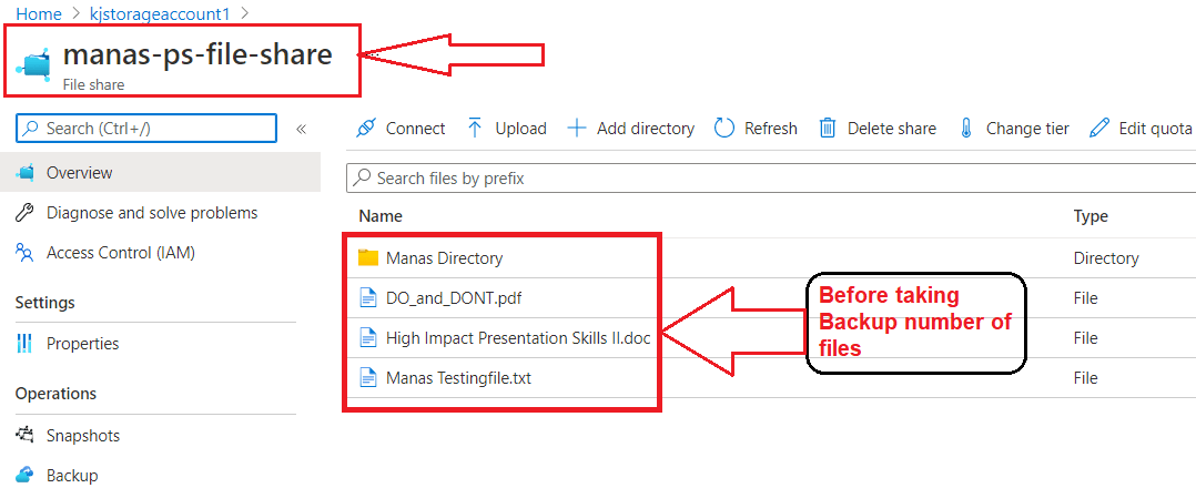 In the above section we, have collected all data we required to restore the backup. As we discussed above that, we can restore an entire file share or specific files on the share. We can restore to the original location, or to an alternate location. In this article we will restore the file share to it’s original location and will override if there is any conflict. So let’s go through the following use cases.