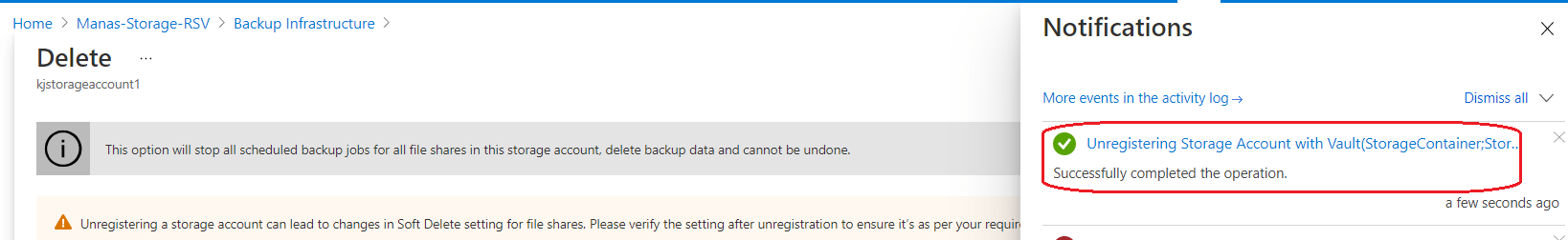 As per Microsoft recommendation to protect our file shares in a particular storage account by using a different Recovery Services vault, first stop protection for all file shares in that storage account. Then unregister the account from the current Recovery Services vault used for protection.