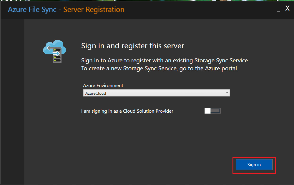 The administrator registering the server must be a member of the management roles Owner or Contributor for the given Storage Sync Service.
