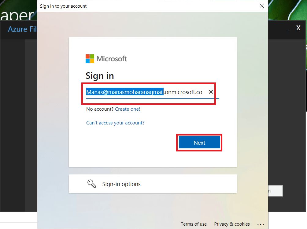 Step 2 – As showing in the following window, we need to Log-In to our azure account as showing in the following figures.