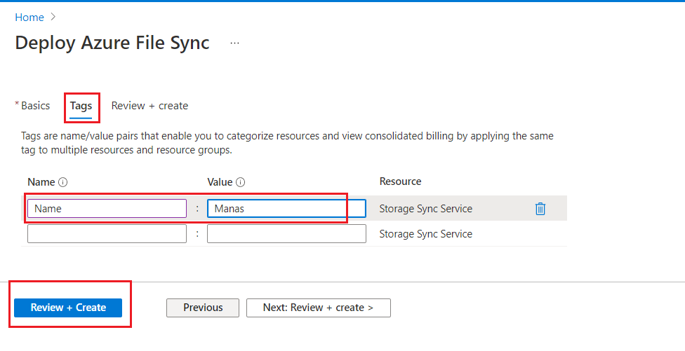 - Location : The region in which we want to deploy Azure File Sync. Only supported regions are available in this list.