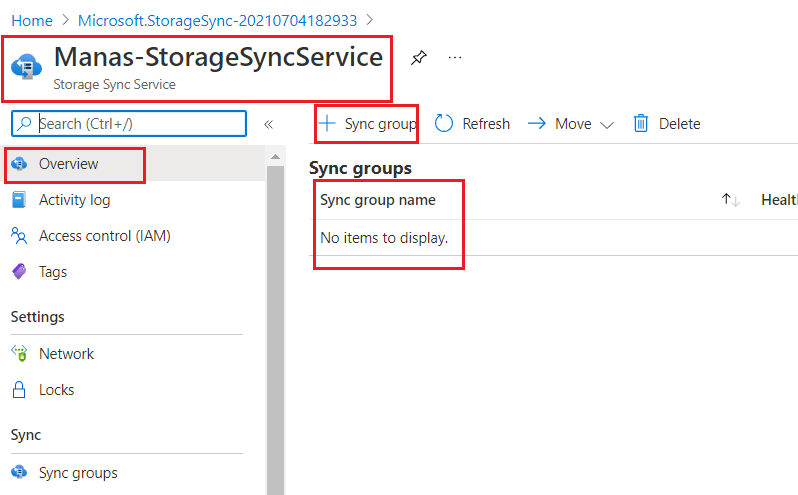 - Resource Group : The resource group that contains the Storage Sync Service.