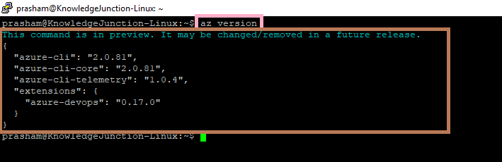 - Once azure-cli installed successfully we can verify installation by executing the command like az version