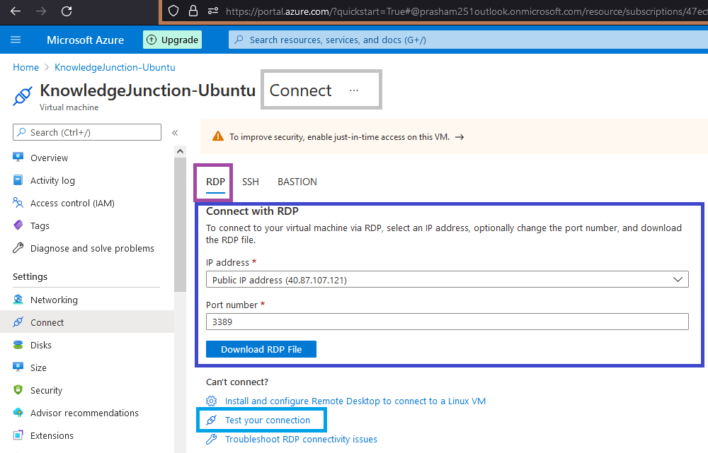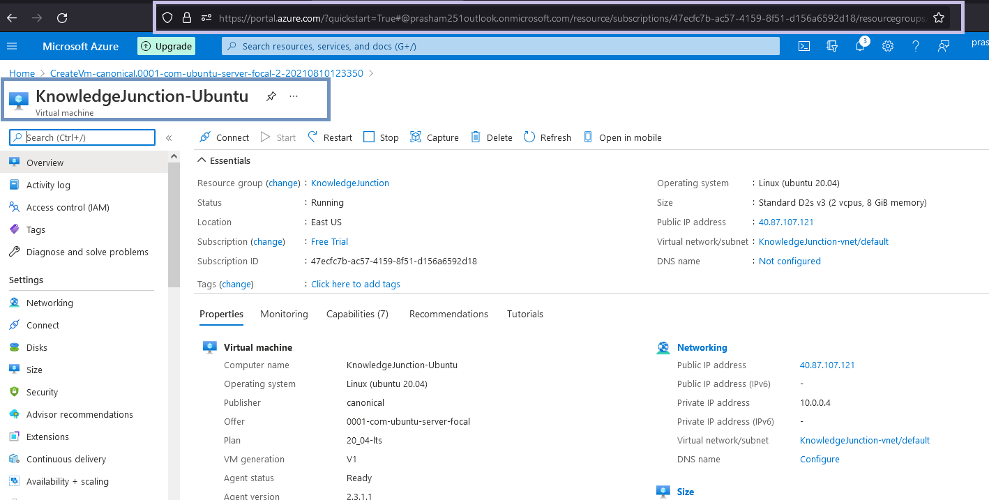 - I have created Linux VM – “KnowledgeJunction-Ubuntu” on my free Azure subscription as