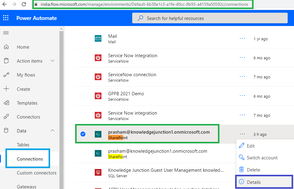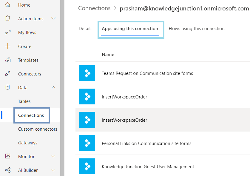 - For example – let see we need to know in which PowerAutomate and PowerApps SharePoint connection is used