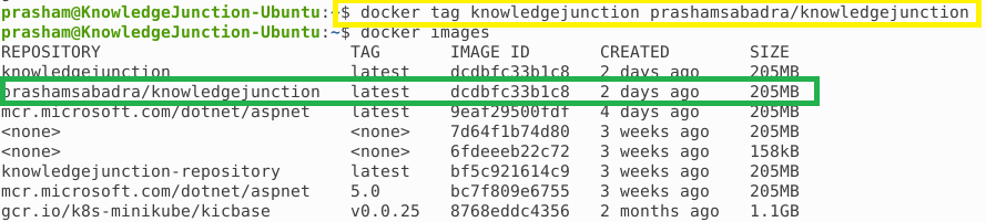prasham@KnowledgeJunction-Ubuntu:~$ docker tag knowledgejunction prashamsabadra/knowledgejunction