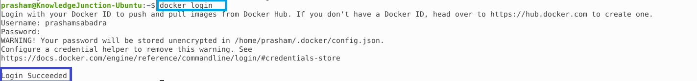 prasham@KnowledgeJunction-Ubuntu:~$ docker login