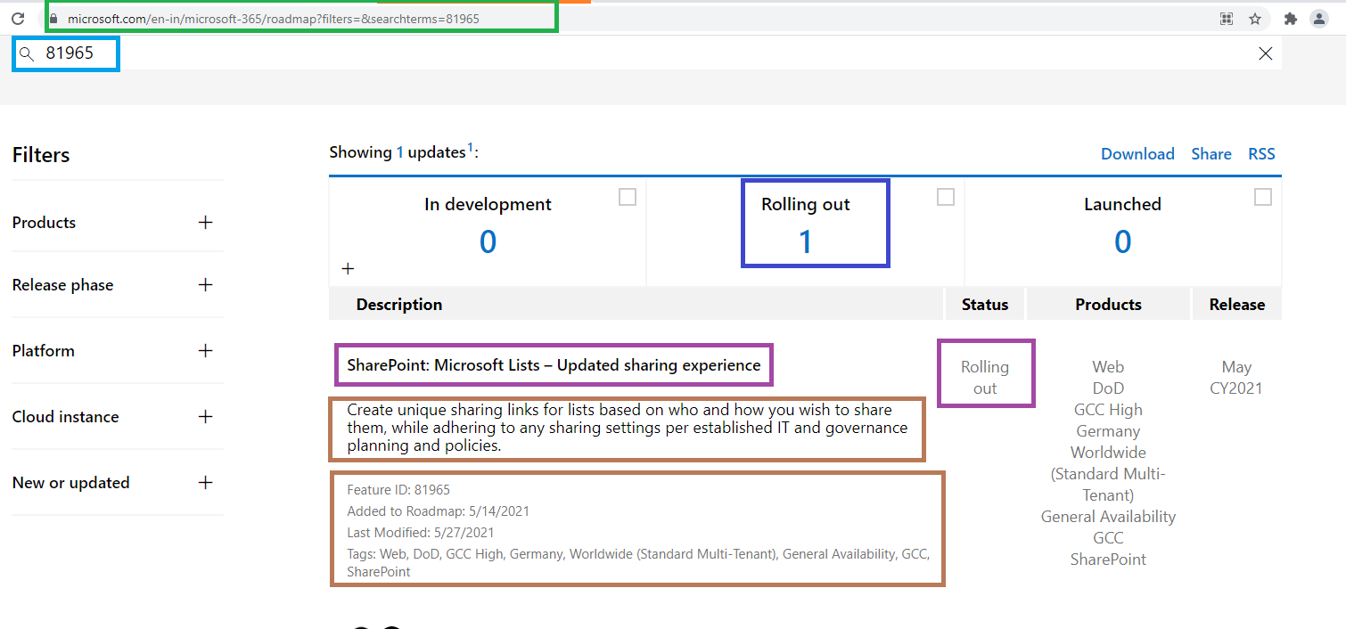 Microsoft 365 – SharePoint Online : Sharing Links for Microsoft Lists is available! – Updated rollout time lines