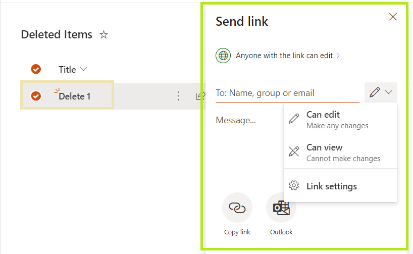 - If Site Administrator doesn’t restricted sharing list item to Site Owner only then users who have edit permissions on list item can share the list item using Share or Copy link option
