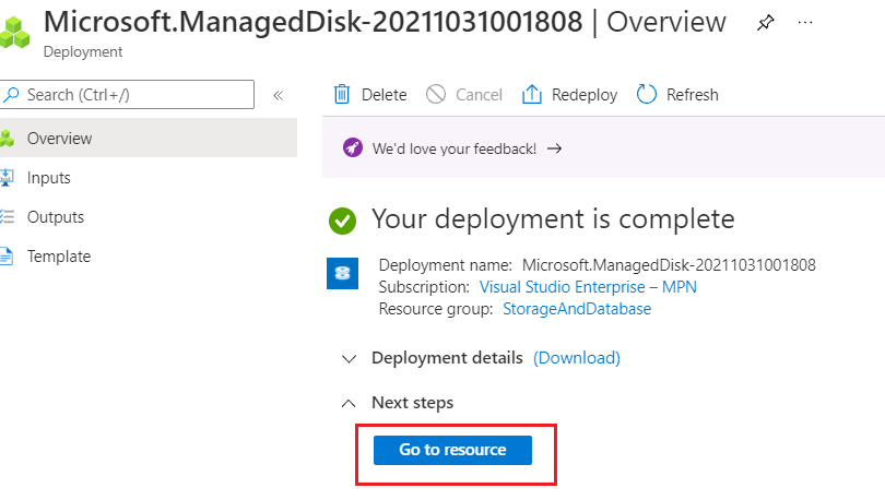 In the following figure we can see that our new data disk is attached to our VM.