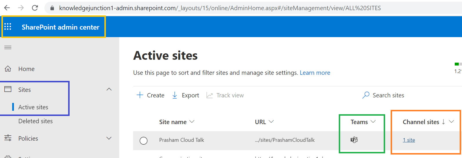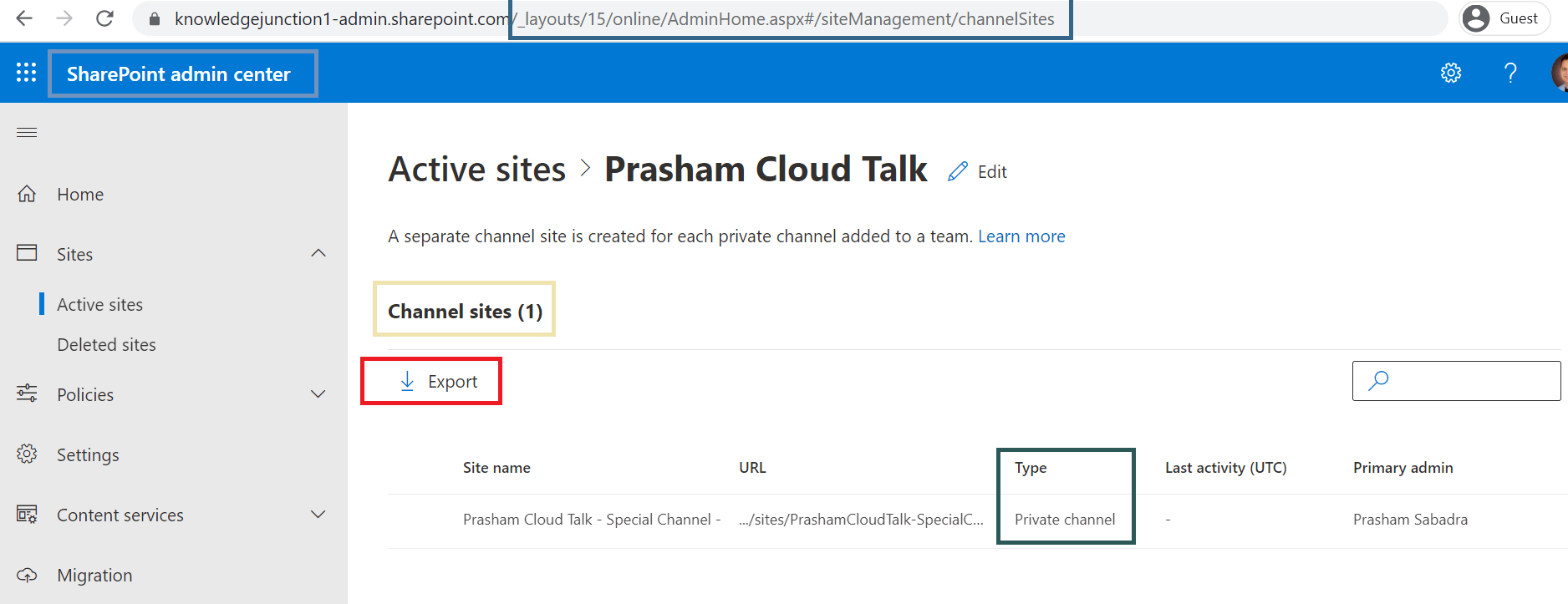 - Now In SharePoint admin center, channel sites are accessible, channel sites are created when special channel (Private channel) are created in Teams. I’ll write separate article for private channels 🙂