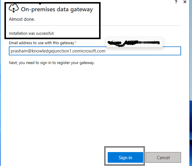 Installing On-premises data gateway on local computer :