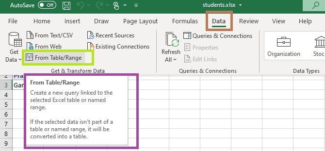 - To have selected data is part of Table – navigate to – Data >> From Table / Range option as shown in below fig