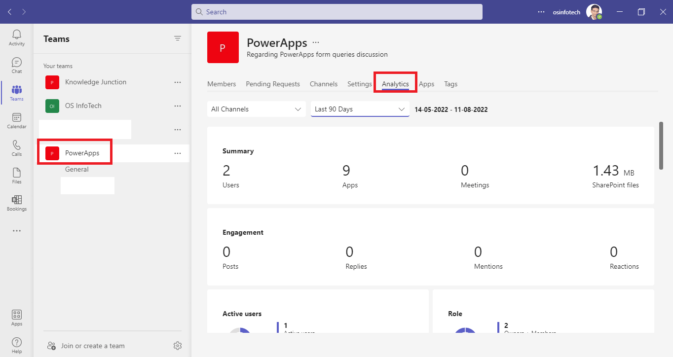 Microsoft Teams allows you to quickly view analytics data about teams that you are a member or an owner of. This info can provide insights into the activity patterns on your teams.