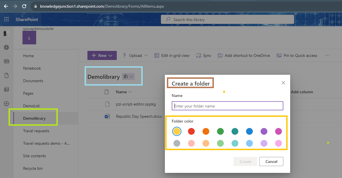 - Create a folder in SPO site document library as in below fig