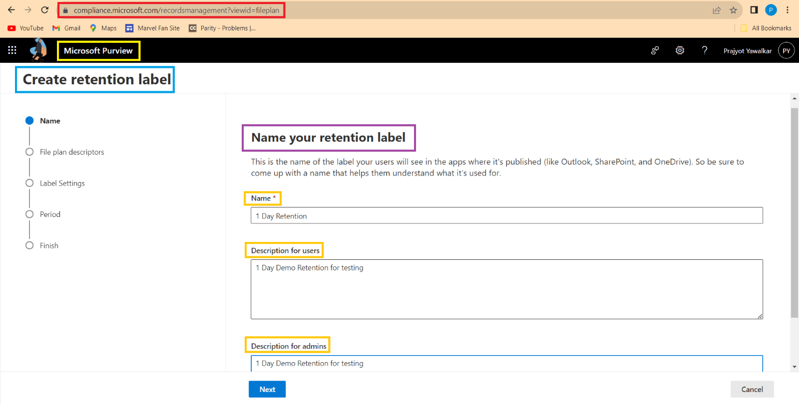 Microsoft 365: Microsoft Purview – Record management – how to manage the document of SharePoint using Records management retention label – Data Governance