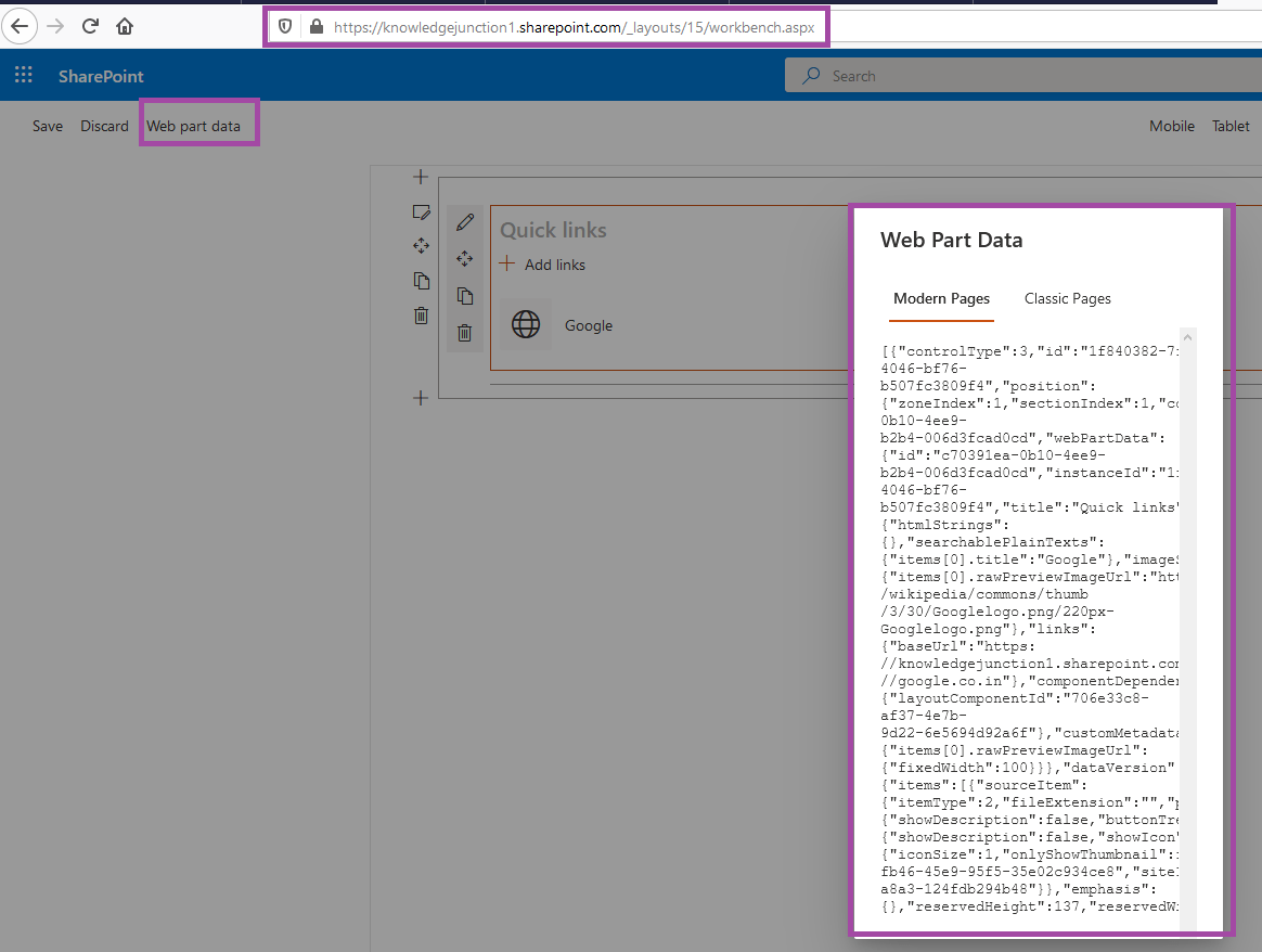M365 – SPFX – Getting JSON data – JSON serialized information of SPFX component to provision / add on modern client side page through CSOM