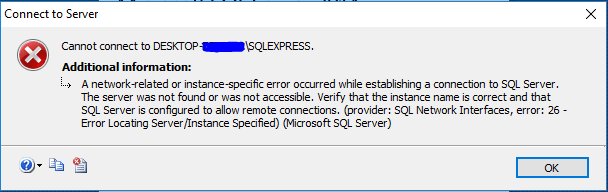 SQL Server – Cannot connect to SQL Server – A network related or instance specific error occurred